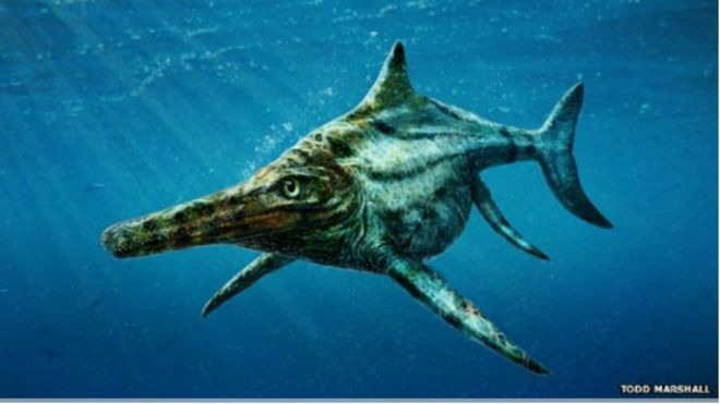 With a length of 4.2 meters measured from snout to tail-reptile was allegedly chasing fish and other reptiles in warm shallow seas and Scotland during the Jurassic period.