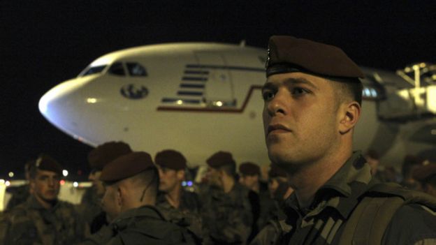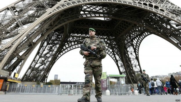 Soldiers arrived at Charles de Gaulle airport as part of additional security personnel on Saturday, November 14th, 2015. AP